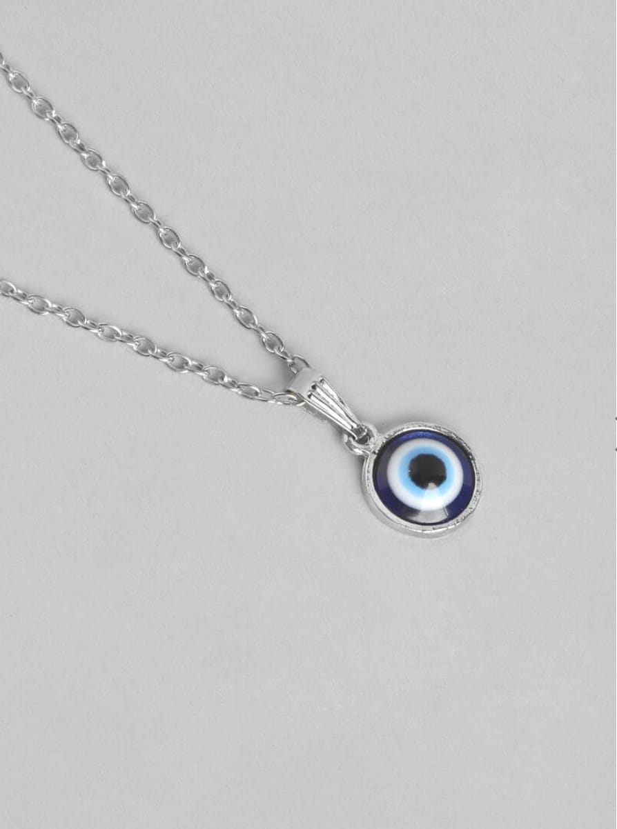 Stylish Silver Plated Stainless Steel Evil Eye Pendant Necklace with Chain designed for a trendy and elegant look. Durable, lightweight, and comfortable to wear. This unisex fashion necklace is perfect for daily wear, parties, and special occasions while adding a stylish touch to any outfit.